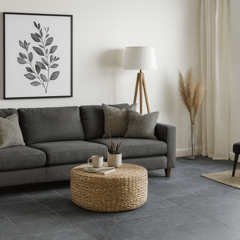 Cette pierre naturelle de teinte gris foncé présente une surface légèrement texturée et nuancée, avec des variations subtiles allant du gris moyen au gris profond. Elle se distingue par son aspect élégant et sobre, idéal pour des aménagements modernes ou classiques. Ses veines fines et discrètes apportent une touche d’authenticité et de raffinement, tout en conservant une homogénéité visuelle. Cette finition lui confère un caractère intemporel, parfait pour habiller un salon