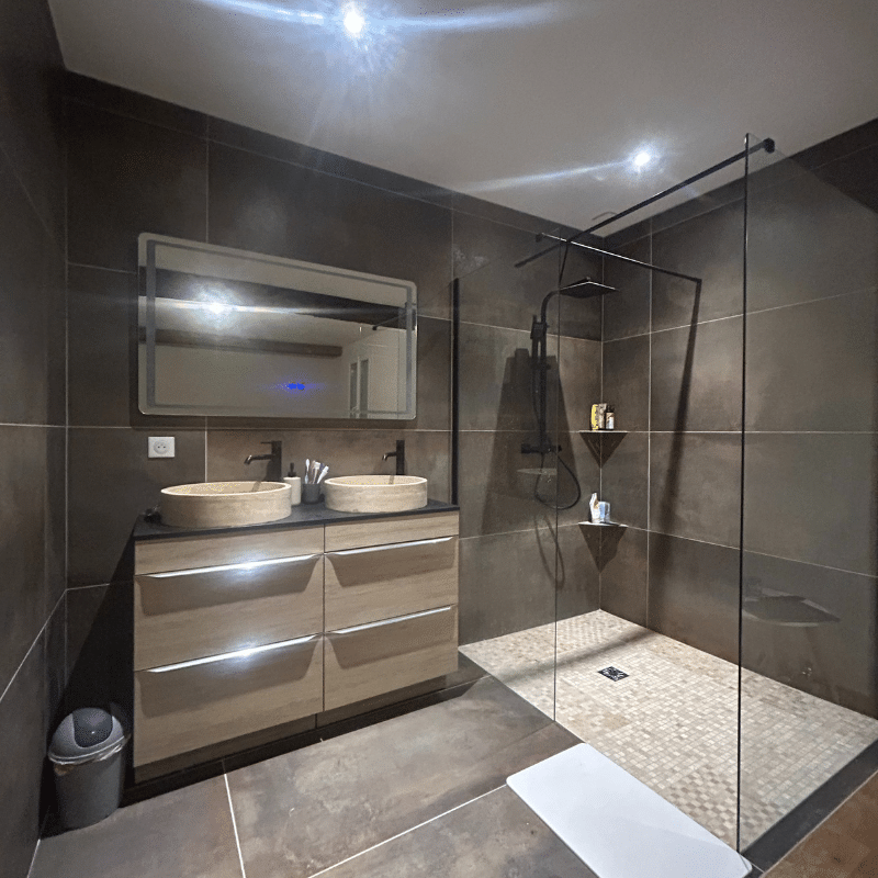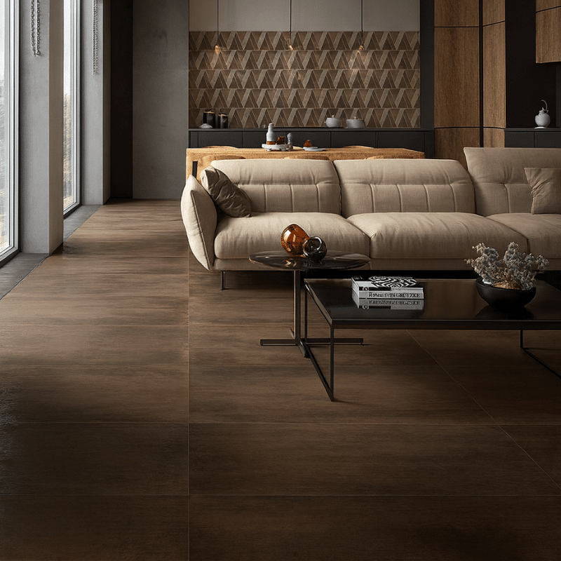 Le grès cérame intérieur est un carrelage robuste et résistant aux tâches, idéal pour un rendu moderne.
