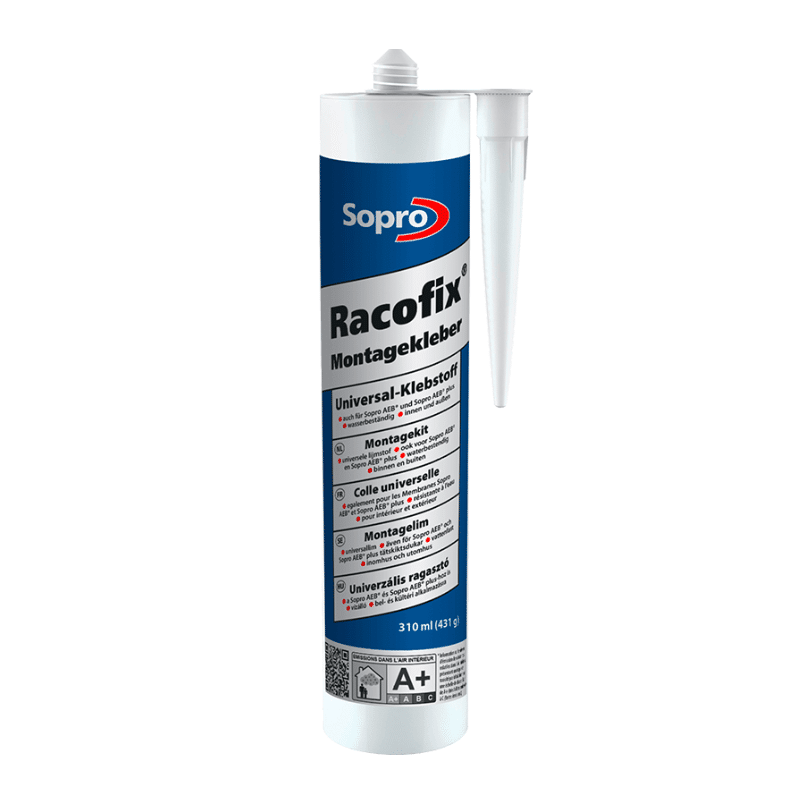 Le Sopro Racofix RMK 818 est une colle-mastic universelle prête à l’emploi, idéale pour le collage et l’étanchéité des bandes, jonctions et accessoires dans les systèmes d’étanchéité Sopro.