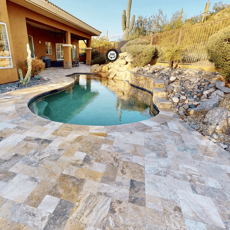 Avec ses nuances chaudes et contrastées, le Travertin Scabas apporte un caractère authentique et naturel. Utilisé en margelle, il combine charme méditerranéen et praticité, tout en assurant confort et résistance autour de la piscine.